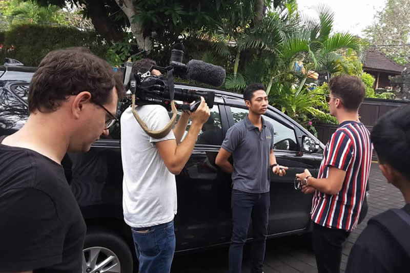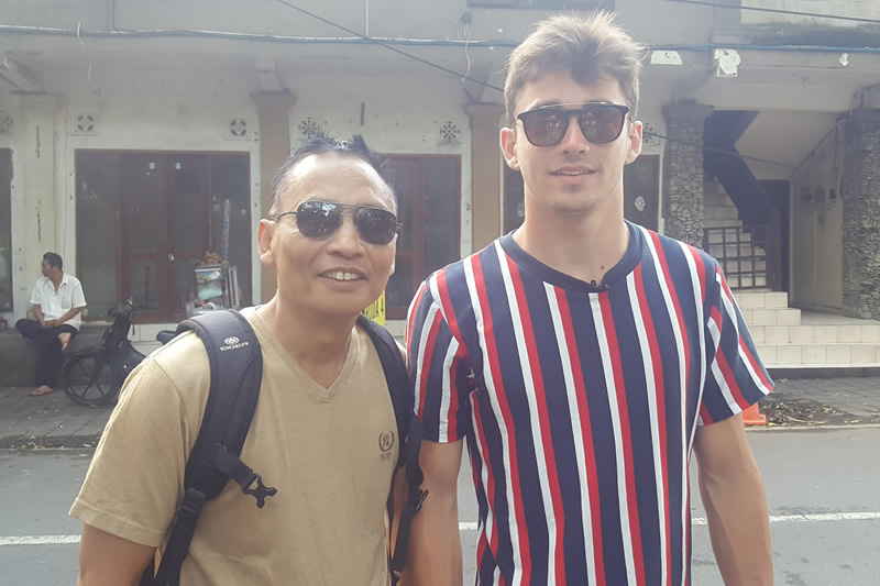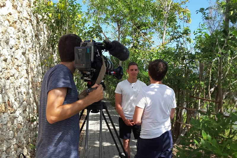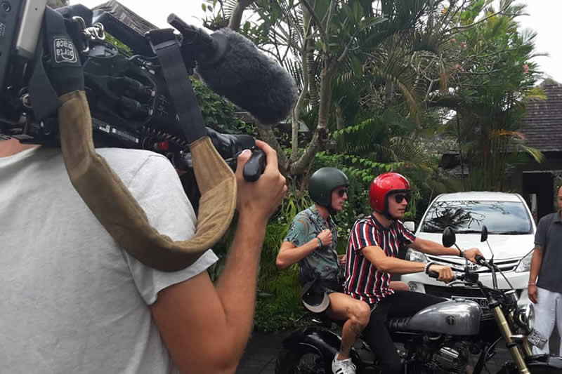 Canal+, Boulogne Billancourt - France - Television News Project - covering the new rising star of Formula One International speed driver Charles Leclerc holidays in Bali, Lionel Ange Mardoche Jaoui /Cameramen, Etienne Mathieu Paolo Pidoux, Location in Bali - August 2018